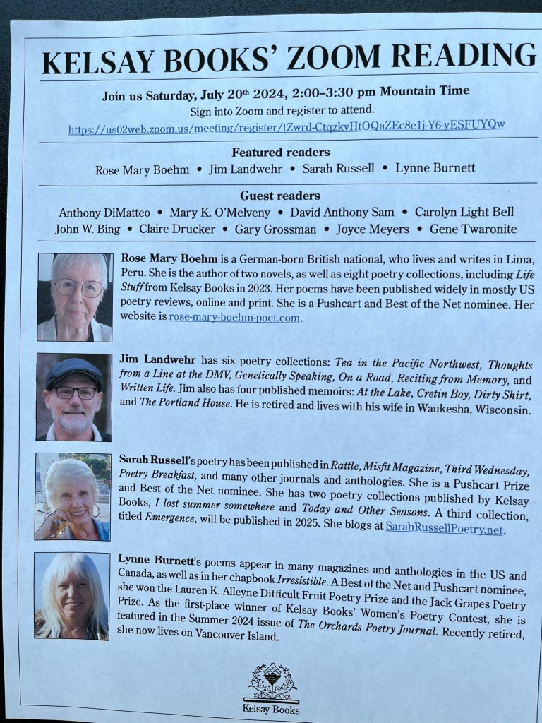Featured poets: Sarah Russell, Rose Mary Boehm, Jim Landwehr, and Lynne Burnett