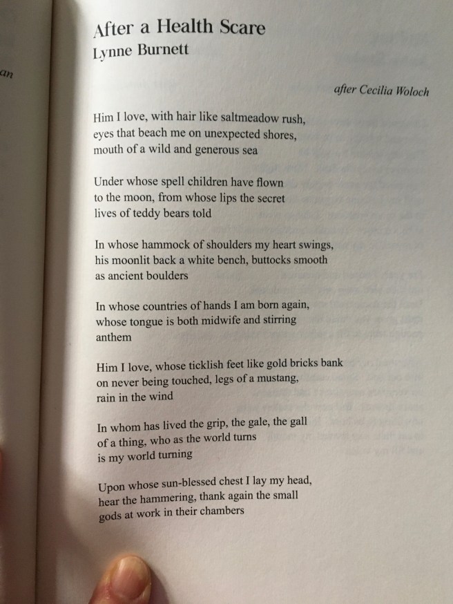 This poem, which first appeared in my chapbook “Irresistible”, is the first of two selected for the anthology “Poets Speaking To Poets: Echoes and Tributes” – the brainchild of editors Robert Hamblin and Nicholas Fargnoli. My poem was written after Cecilia Woloch’s “Blazon”. I will post my tribute poem later. The book is a wonderful collection of poems that talk to each other through poets past and present. It’s available on Amazon here and also here.
